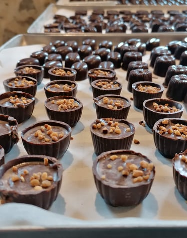 J'adore combiner les goûts de chocolats pur avec des épices et des herbes. Toujours artisanales, les moulures, les pralinés, les préparations sont faits maison. Sans conservateurs ou produits chimiques.